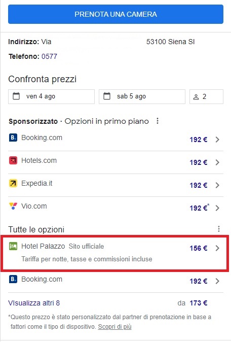 • Aumenta le prenotazioni dirette su Google: I viaggiatori effettuano prenotazioni sul sito web del tuo hotel.