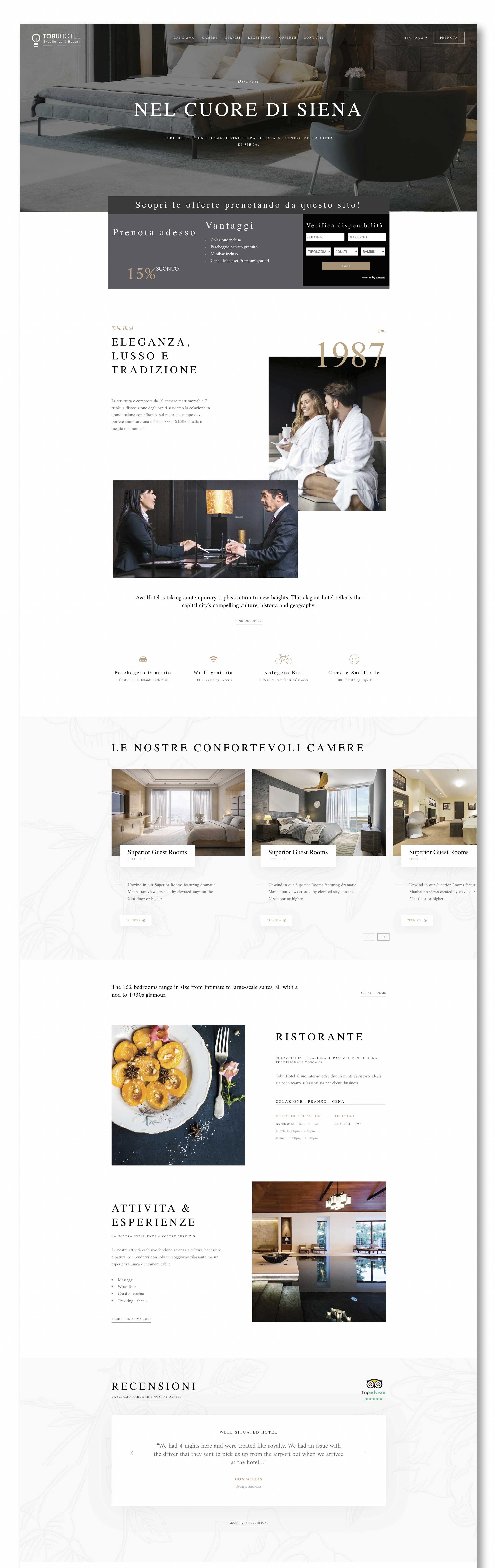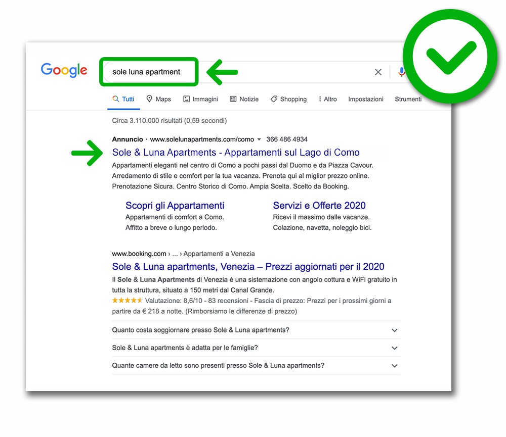 #START2024 >> OFFERTA VALIDA FINO AL 31.12.2024 * Pagamento rateizzato mensilmente con carta di credito. * La durata del contratto è annuale, dal secondo anno pagherete solo Hosting e Domino. Ecco un esempio di sito web responsive con il Booking Engine di Xenion integrato per aumentare le prenotazioni dirette. Il sito comprende tutte le esigenze di una struttura ricettiva, oltre ad essere completo di tutti gli strumenti di marketing: oltre al gestionale infatti è integrato con Google Analytics e Pixel di Facebook per tracciare e analizzare il flusso di utenti e visitatori. Tutto in un unica suite di controllo.Per gestire meglio e quindi avere più TEMPO Sempre più spesso la burocrazia e i vari adempimenti ci prendono gran parte del nostro tempo. L’opportunità che deriva da una gestione professionale (con l’aiuto della tecnologia) è la possibilità di avere più tempo per fare una strategia, analizzare i dati che abbiamo e ottimizzare tutti i canali al fine di aumentare le vendite ed evitare overbooking. Pms + Booking Engine + Channel Manager Attiva il servizio di Google Ads per essere nella prima posizione di Google quando i tuoi clienti ricercano il nome della tua struttura, non farti superare da Booking.com. Grazie alle campagne di protezione del nome della tua struttura ( brand protection ) su Google potrai aumentare il numero di prenotazioni dirette risparmiando così le commissioni dei portali. Le migliori soluzioni di Web Marketing Turistico