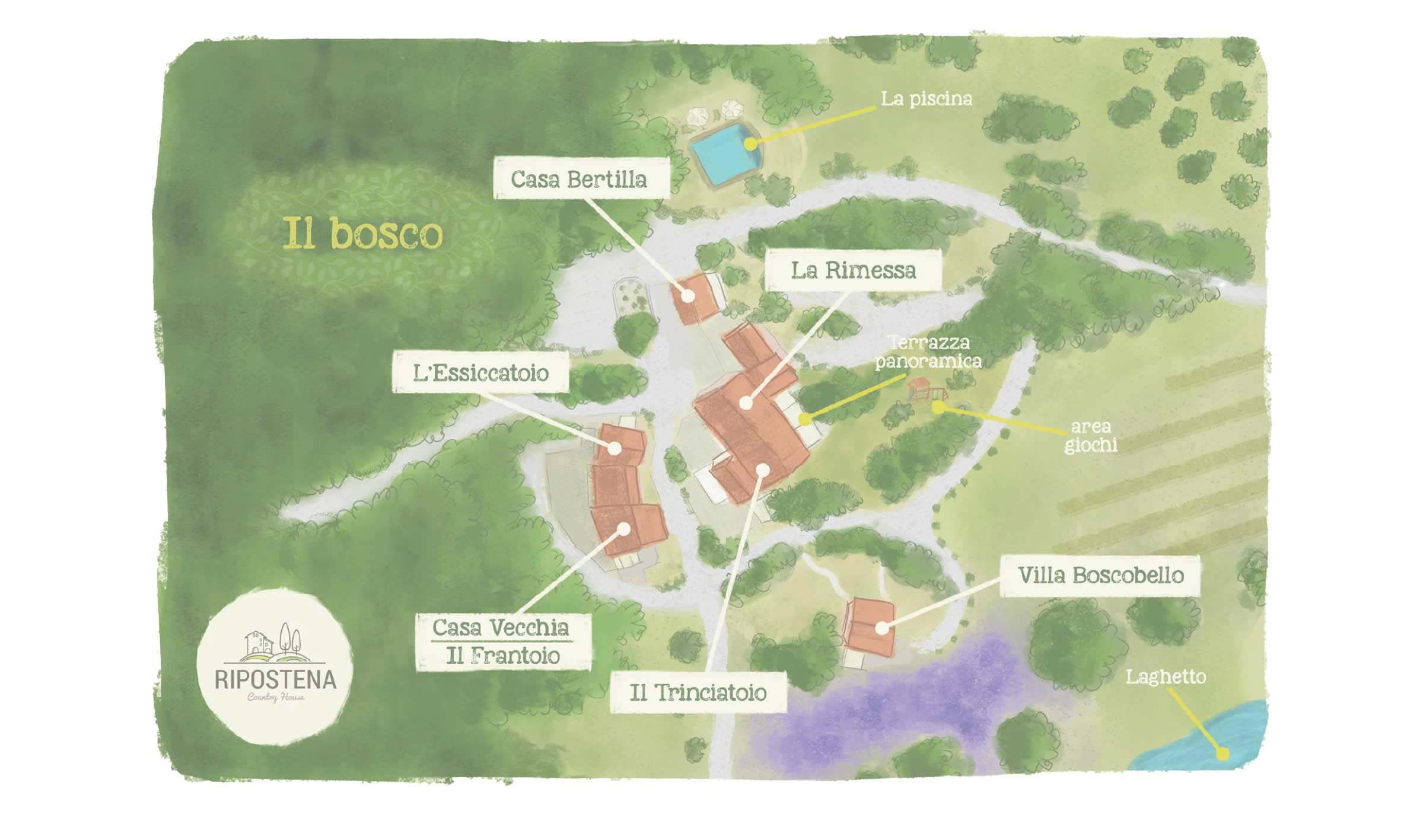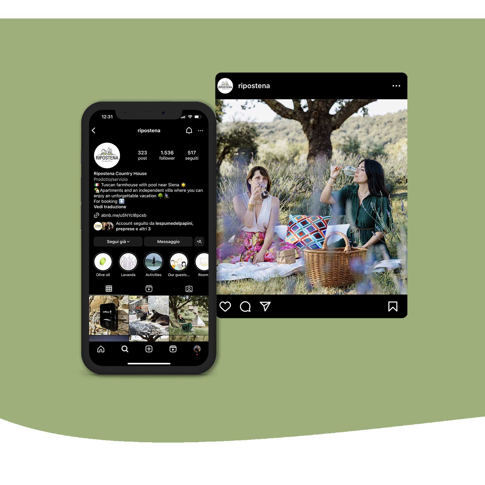 Ripostena è un piccolo borgo situato su una collina nei dintorni di Siena. Il podere, costituito da 4 nuclei, ospita otto appartamenti, ognuno in uno spazio anticamente adibito alle diverse funzioni della fattoria. I suoi ambienti spaziosi, con solidi muri in pietra locale ed originali travi a vista, sono stati sapientemente restaurati nell’intento di preservare il passato, dando allo stesso tempo vita ad un comfort abitativo moderno. La struttura ricettiva ha richiesto alla nostra agenzia di curare tutta la presenza online, curando il restyling del sito web, integrando un gestionale per la prenotazione diretta delle camere, realizzando attività di social media marketing sulle piattaforme di META e le campagne ADV su Google. Il marketing turistico è il nostro pane quotidiano! Per questo per Ripostena abbiamo dato fondo a tutto il nostro know-how per realizzare una strategia di comunicazione a 360°, integrando linee grafiche studiate ad hoc, il nostro software di prenotazione Xenion ed il metodo Tobu per le strutture ricettive! Oltre alla solita produzione foto & video, ormai prassi per tutte le realtà che scelgono il metodo Tobu per comunicarsi sui social media, per Ripostena abbiamo realizzato una brand identity ad hoc coinvolgendo un visual artist che si è occupato di disegni e animazioni. Casa vacanze nei dintorni di Siena